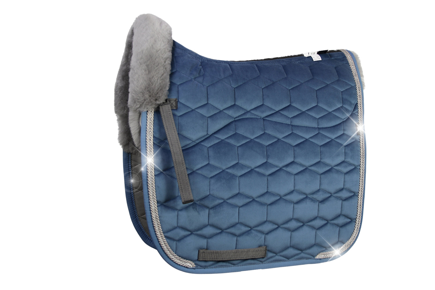Satteldecke Mittelblau mit Moosgummiauflage, für Dressur mit Barockkissen