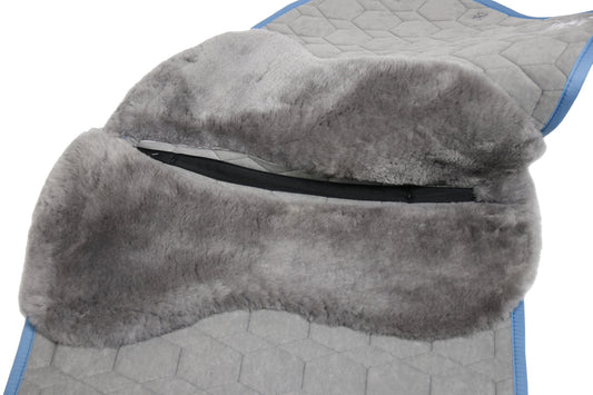 Eurofit Lammfell Schabracke Dressur Gr. L Glanzstoff Cornet Blue, Grau
