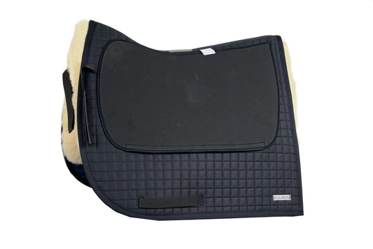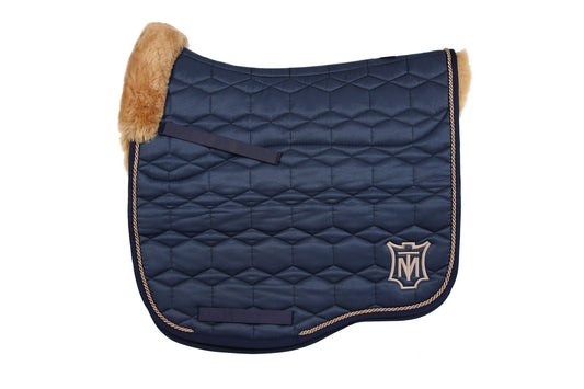 Eurofit Lammfell Schabracke Glanzstoff Dressur Gr. L Navy Honig mit Kordel