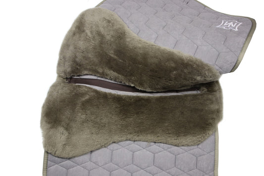 Eurofit Lammfell Schabracke Glanzstoff Dressur Gr. L Khaki Schlamm