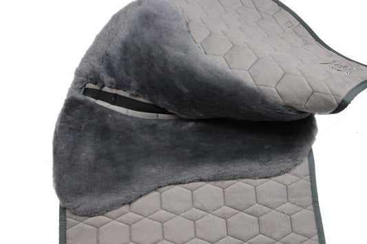 Eurofit Lammfell Schabracke Glanzstoff Dressur Gr. L Petrol, Grau