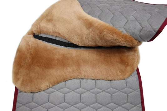Eurofit Lammfell Schabracke Samt Dressur Gr. L Bordeaux, Honig ohne Logo