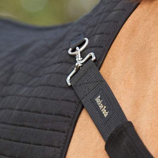 Ihren guten Namen hat sich die Marke Back on Track mit innovativen Produkten mit Keramik-Inlay geschaffen. Die im Inneren verarbeiteten Keramikpartikel haben die Fähigkeit, Körperwärme als infrarote Strahlung zu reflektieren. Sattelunterlagen von Back on Track sollen auf diese Weise die Durchblutung fördern, Verspannungen lindern und das Wohlbefinden steigern.