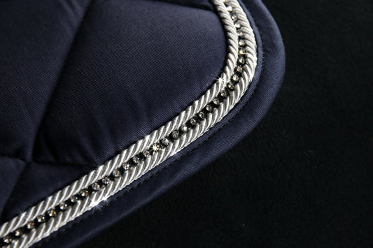 Schabracke Dunkelblau mit zwei eleganten Kordeln und Strassband