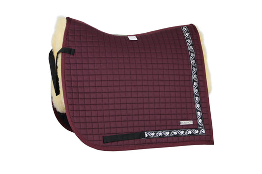 Unsere Eigenmarke EQUINOS steht für Sattelunterlagen von hervorragender Qualität mit bestem Tragekomfort für das Pferd. Der Stoff ist in einer festen und formstabilen Qualität mit einer dauerhaft guten Passform. Alle EQUINOS Sattelunterlagen sind auch mit polsterbaren Moosgummitaschen und in verschiedenen Schnitten für Dressur-, Barock-, Fell- oder baumlose Sättel lieferbar und lassen sich hinsichtlich Farbe und Design individuell konfigurieren. Für noch mehr Tragekomfort können sie über ein so einfaches wie effektives System mit einem flexiblen, nicht auftragenden Lammfellpad kombiniert werden.