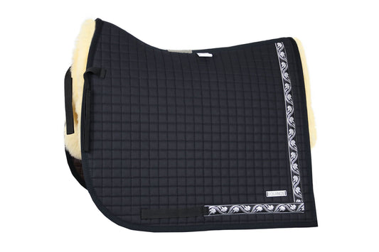 Unsere Eigenmarke EQUINOS steht für Sattelunterlagen von hervorragender Qualität mit bestem Tragekomfort für das Pferd. Der Stoff ist in einer festen und formstabilen Qualität mit einer dauerhaft guten Passform. Alle EQUINOS Sattelunterlagen sind auch mit polsterbaren Moosgummitaschen und in verschiedenen Schnitten für Dressur-, Barock-, Fell- oder baumlose Sättel lieferbar und lassen sich hinsichtlich Farbe und Design individuell konfigurieren. Für noch mehr Tragekomfort können sie über ein so einfaches wie effektives System mit einem flexiblen, nicht auftragenden Lammfellpad kombiniert werden.