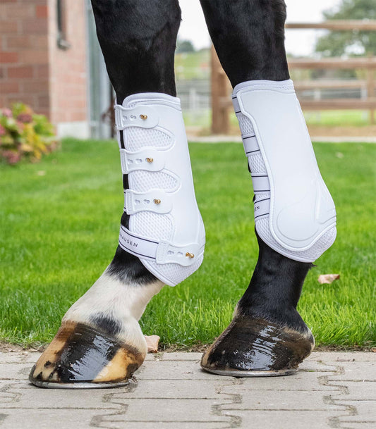 Der klassische Beinschutz fürs Pferd ist heute in vielen Fällen ein Hightechprodukt: innovative Materialien in etlichen Kombinationen, unterschiedliche Schnitte für unterschiedliche Anforderungen, vielseitige Ausstattung – der Markt für Beinschutz ist so riesig wie unübersichtlich. Allerdings gibt es einige grundsätzliche Kriterien, die Gamaschen erfüllen sollten und an denen man sich beim Kauf gut orientieren kann. Hochwertige Gamaschen haben in der Regel eine gute Passform und lassen sich über ihre Verschlüsse sicher und damit rutschfrei am Pferdebein befestigen. Sie beeinträchtigen auch die Blutzirkulation nicht. Des Weiteren sind sie atmungsaktiv, sodass ein Hitzestau am Bein vermieden wird, denn die Sehnen am Pferdebein reagieren empfindlich auf Hitze und können dadurch geschädigt werden.