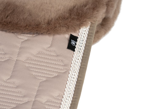 Lammfell Schabracke Dressur Gr. L, Glanzstoff, Walnuss, Crystal Kordel