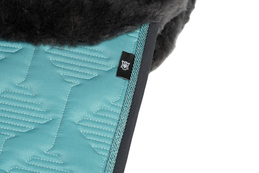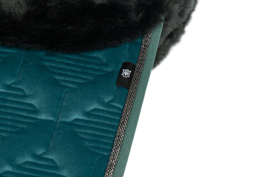 Lammfell Schabracke Dressur Gr. L, Samt, Petrol mit Webkordel