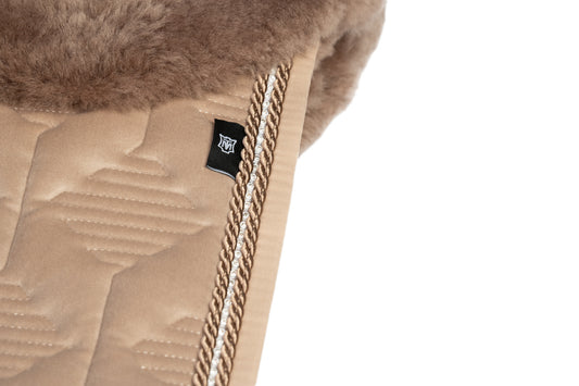 Lammfell Schabracke Dressur Gr. L, Samt, Walnuss, Crystal Kordel