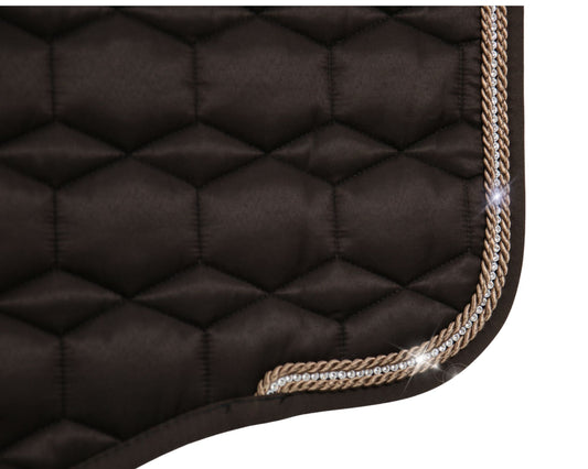 Eurofit Lammfell Schabracke Glanzstoff Dressur Gr. L Braun, Braun mit Crystal Kordel
