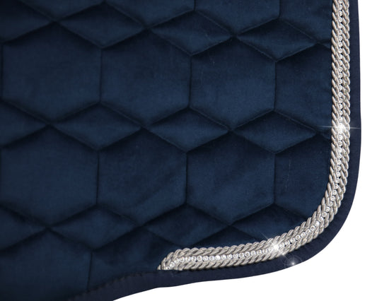 Lammfell Schabracke Samt Dressur Gr. L Navy, Honig, mit Crystal Kordel
