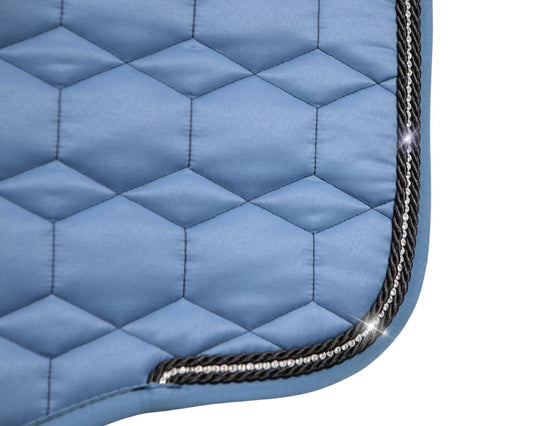 Eurofit Lammfell Schabracke Glanzstoff Dressur Gr. L Cornet Blue, Grau mit Crystal Kordel