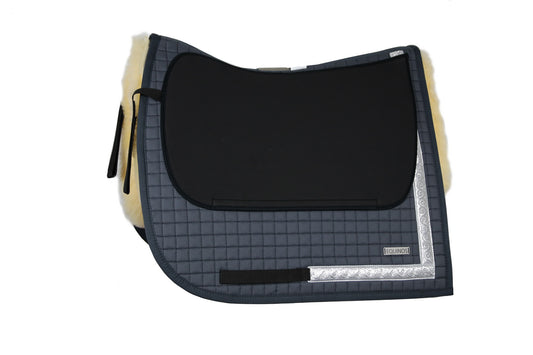 AusverkauftSatteldecke MARIA mit Silberlitze in Schwarz