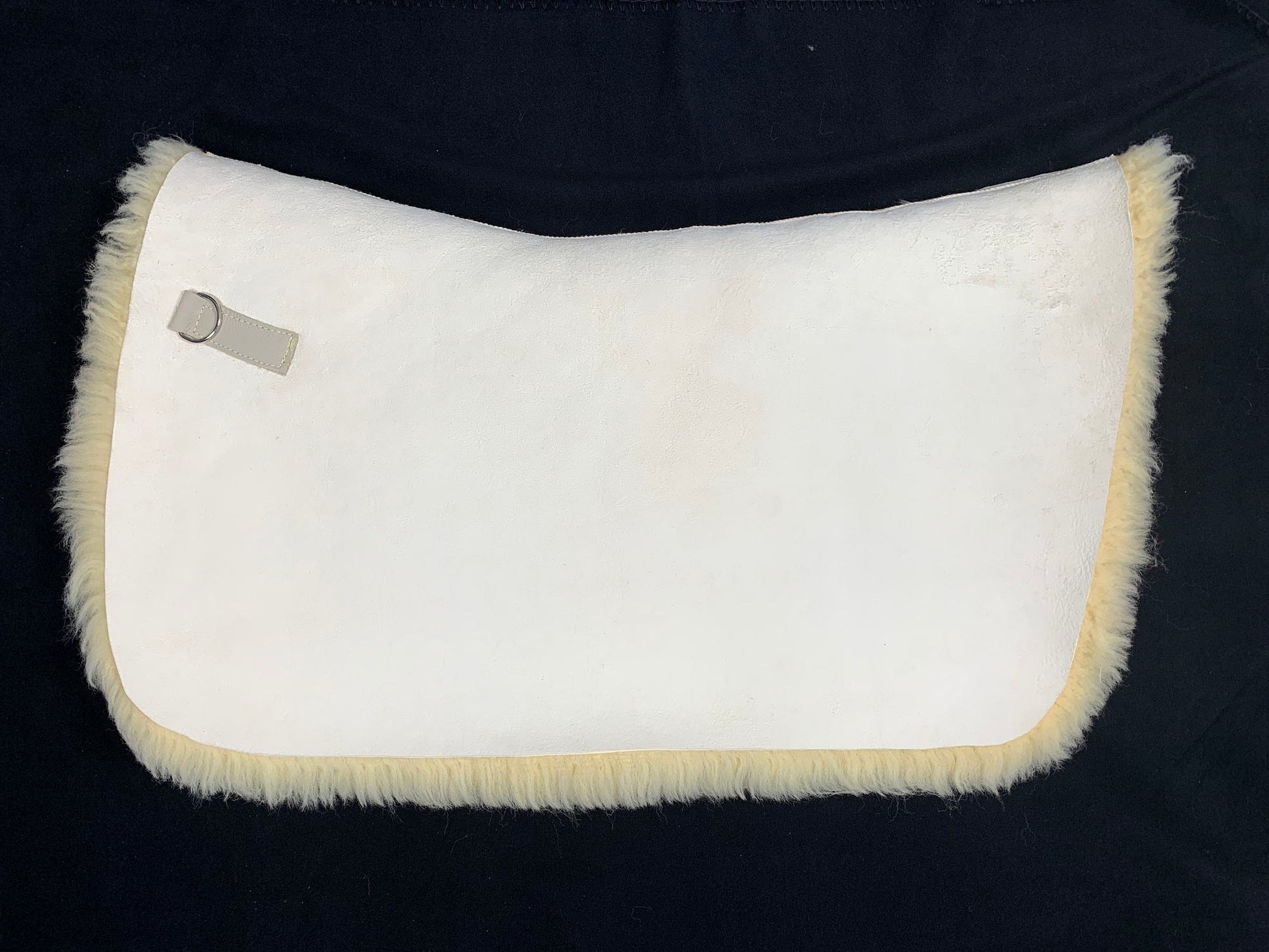 Das Fell ist leicht zu befestigen und wird durch 2 D-Ringe mit den Klettbändern der Satteldecke fixiert. Es haftet sehr gut unter der Satteldecke, da das Leder nicht unter der Satteldecke verrutscht.