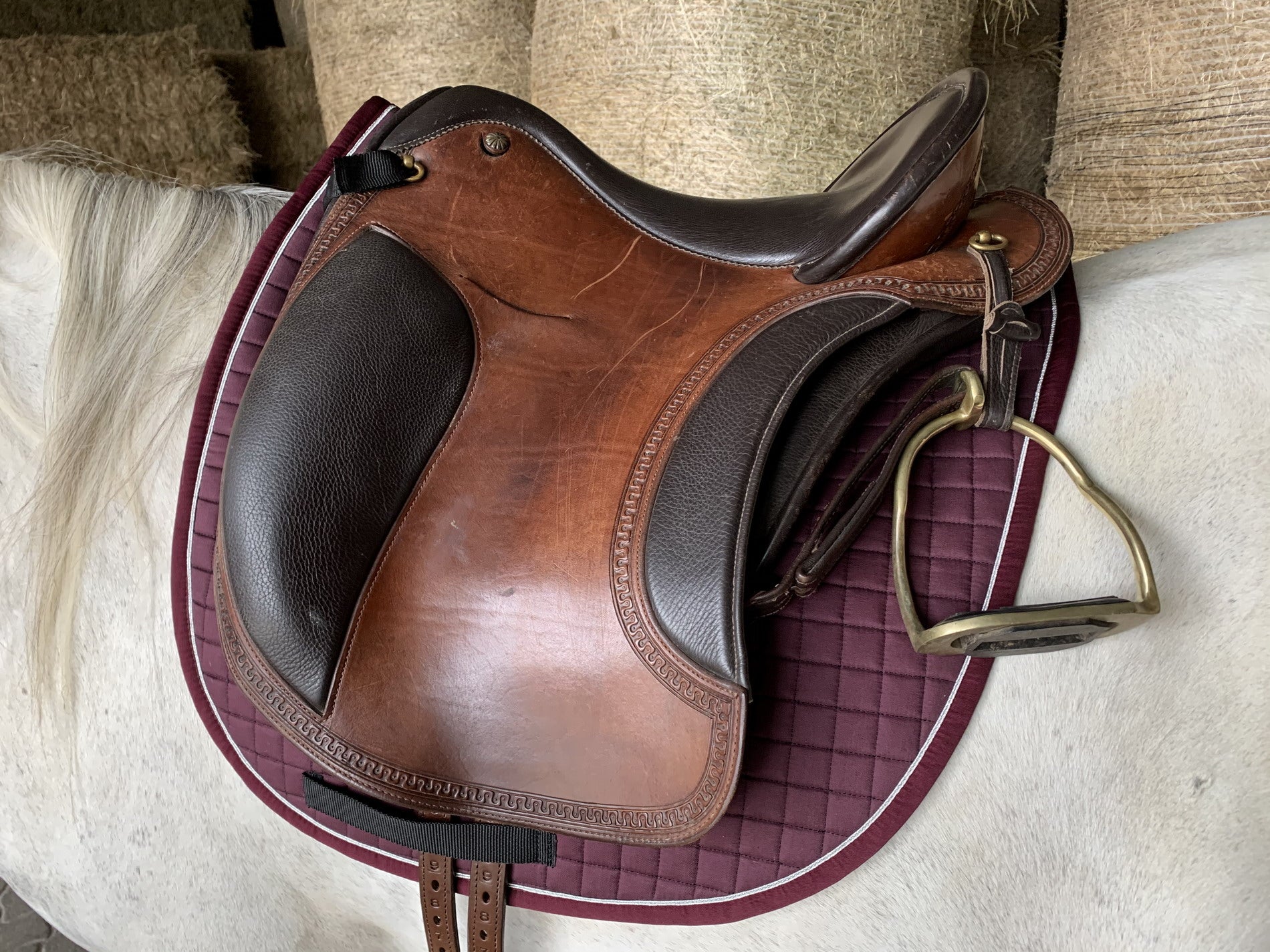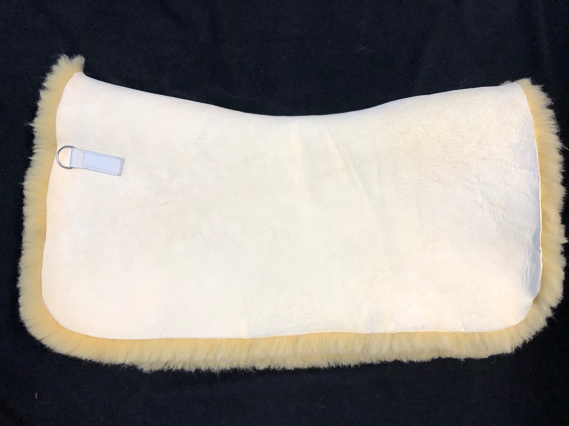 Das Fell ist leicht zu befestigen und wird durch 2 D-Ringe mit den Klettbändern der Satteldecke fixiert. Es haftet sehr gut unter der Satteldecke, da das Leder nicht unter der Satteldecke verrutscht.
