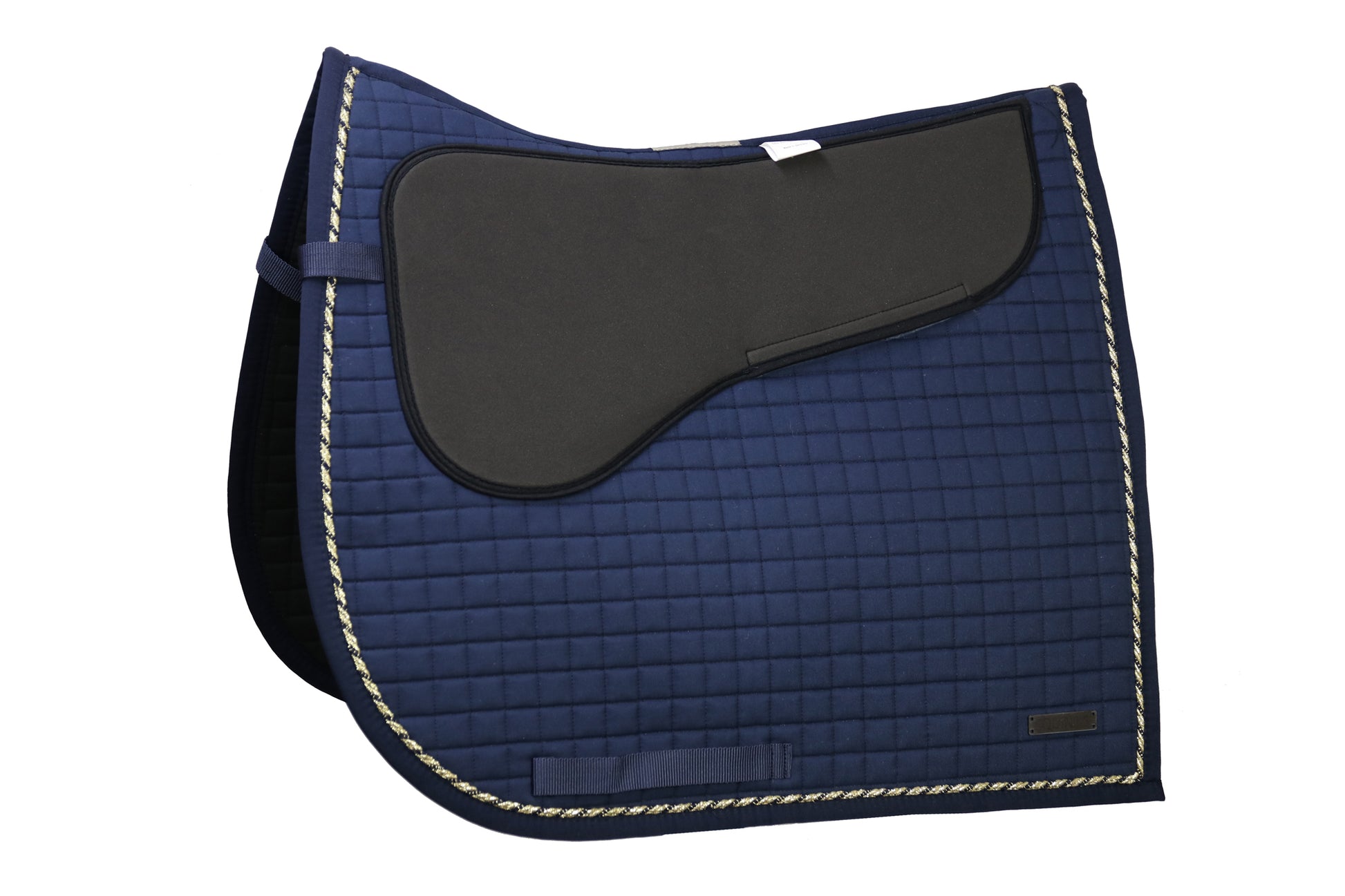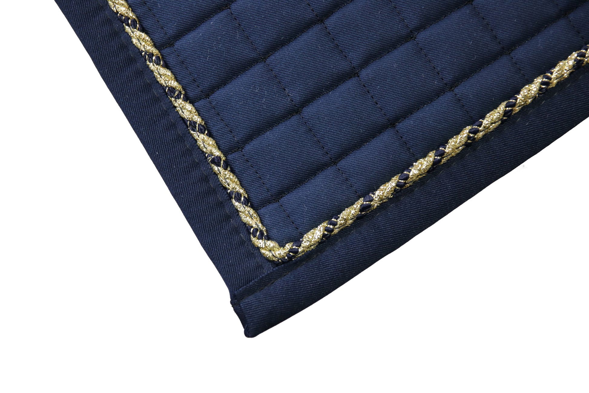 EQUINOS Schabracke LISA in Dunkelblau mit Lurexkordel und Moosgummitaschen zum Polstern.